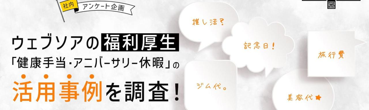 ウェブソア株式会社 about 2 months ago Follow 採用課 【社内アンケート企画】ウェブソアの福利厚生「健康手当・アニバーサリー休暇」の活用事例を調査! こんにちは!ウェブソア採用担当です。今回は、ウェブソアの福利厚生にある「健康手当・アニバーサリー休暇」の活用に関して、全社員を対象にアンケート調査を実施しました!「健康手当」はどんな目的で利用す... Read more