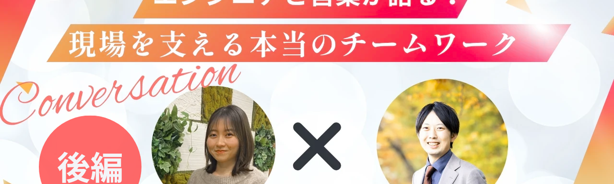 株式会社Livany 13 days ago Follow 野町 祐介 エンジニアと営業が語る!現場を支える本当のチームワーク 〜後編〜 みなさんこんにちは!今回は現場で活躍するエンジニアとそれを支える営業担当との対談の後編をお届けします!(前編はこちら)前編では、エンジニアと営業それぞれの仕事内容や大変だったことなどのリアルを語... Read more
