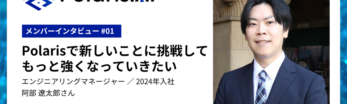 Polaris.AI株式会社 12 months ago Follow Yuu Tadokoro and 1 others スタートアップならではの責任感とチャレンジ精神。エンジニアリングマネージャー阿部遼太郎の挑戦【1/3】 2024年4月にエンジニアリングマネージャーとして入社された阿部遼太郎さんに、インタビューを実施。は、NTT東日本からPolaris.AIに転職を決めた背景や、転職によって生じた変化を伺いました... Read more