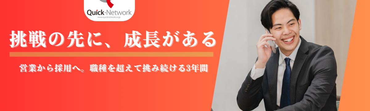 クイック・ネットワーク株式会社 16 days ago Follow 神田 優月 【社員インタビュー】挑戦の先に、成長がある 営業から採用へ。職種を超えて挑み続ける3年間 こんにちは。インターン生の神田です。今回は2023年4月に新卒入社された政木さんにインタビューしました。入社以来、営業と採用の両面で成果を積み上げてきた政木さん。異なる領域での挑戦を通して、どの... Read more