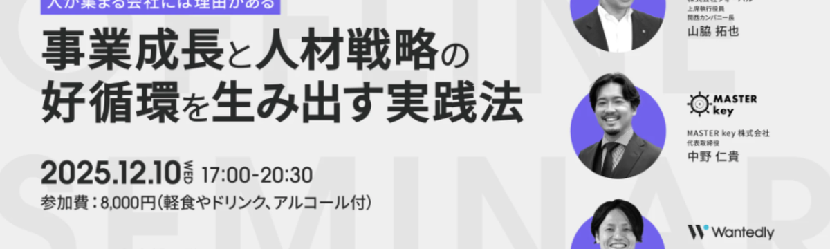 セミナー・イベント 2 days ago Follow Taniguchi Nao and 1 others Wantedly社・フォーバル社と共同セミナーを開催いたします。 セミナーのご案内となります。12月10日(水)17時より、Wantedly社・フォーバル社と共同セミナーを実施する運びとなりました。企業経営の価値観が大きく変わる今、「人が集まらない」「売上が伸... Read more