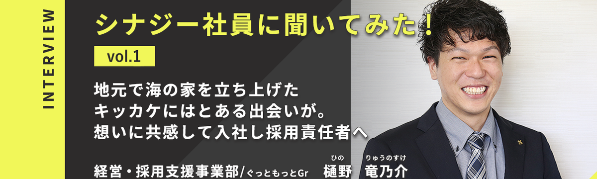 株式会社シナジー about 3 years ago Follow Tomohiro Igaki and 1 others 【インタビュー企画】第1回 地元で海の家を立ち上げたキッカケにはとある出会いが。想いに共感して入社し採用責任者へ プロフィール 樋野竜乃介1997年3月生まれ 島根県出雲市出身島根県立大学総合政策学部から2019年新卒入社。経営採用支援事業部ぐっともっとGrとしてお客様の採用課題の発見や、課題と向き合い様々... Read more