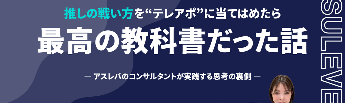 株式会社アスレバ 1 day ago Follow 堀江 文菜 推しの戦い方を“テレアポ”に当てはめたら、最高の教科書だった話― アスレバのコンサルタントが実践する思考の裏側 ― こんにちは。アスレバでコンサルタントをしている堀江です。普段は、クライアントワークとして営業設計や改善の伴走を行いながら、自社の商談フロントにも立っています。そんな日々の中で、特に向き合ってきた... Read more