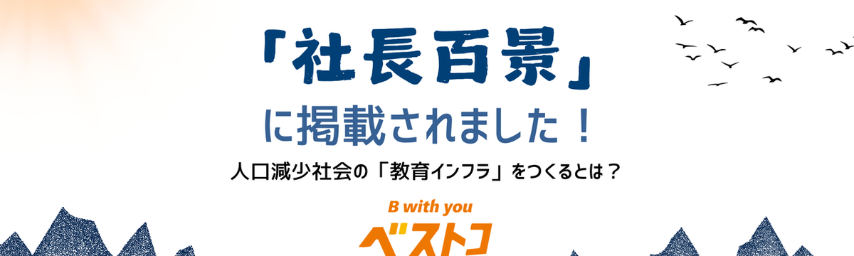 株式会社ベストコ 20 days ago Follow Chisato Owada and 1 others 【社長インタビュー】「社長百景」に掲載されました!──地方の「教育インフラ」をつくるとは? この度、日本全国の経営者のインタビューをメインとしたWebメディア「社長百景」に、弊社ベストコ代表取締役社長・井関のインタビュー記事が掲載されました。人口減少が進む地方で、なぜ教育に向き合い続け... Read more