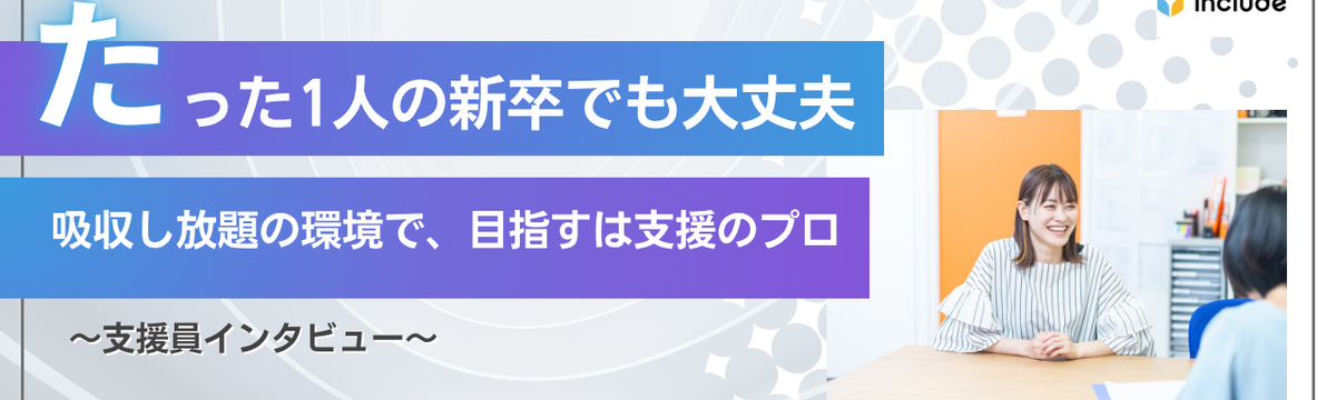 インクルード株式会社 5 days ago Follow インクルード 採用広報 「たった一人の新卒、でも大丈夫」多様な先輩たちから吸収し放題の環境で、目指すは支援のプロ 「周りには社会人経験が豊富な先輩がたくさんいて、その方々の立ち居振る舞いすべてが、私にとっては“生きた教材”でした」そう話すのは、インクルードで初めて新卒として入社した大塚センターのスタッフIさ... Read more