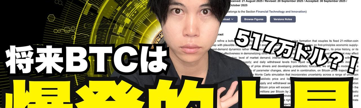 Yuji Mizutani 27 days ago Follow 【希望の光】ビットコインは2035年までに517万ドルに到達する ビットコインは2035年までに1BTC=517万ドルに到達する。ビットコインの需要と供給の観点のみを突き詰めて、将来の価格予測を行なった、査読付き論文『“Bitcoin Supply, Dema... Read more