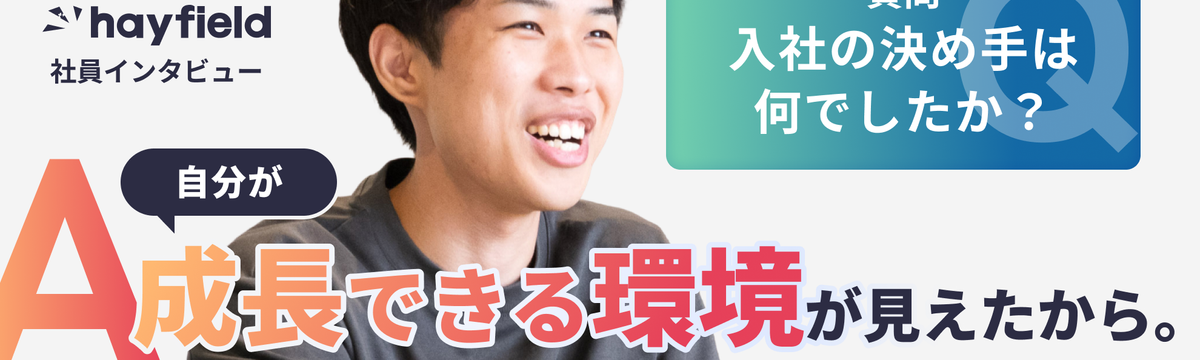 株式会社ヘイフィールド over 3 years ago Follow Rikuya Yamauchi and 2 others 【社員紹介】成長するための要因が整っていて必死になれる環境 こんにちは、ヘイフィールドで採用人事をしている山内です!今日は、業界未経験ながら即戦力として活躍している渡辺さんにインタビューしてきました。【渡辺さんのプロフィール】出身地:神奈川県大和市趣味 ... Read more