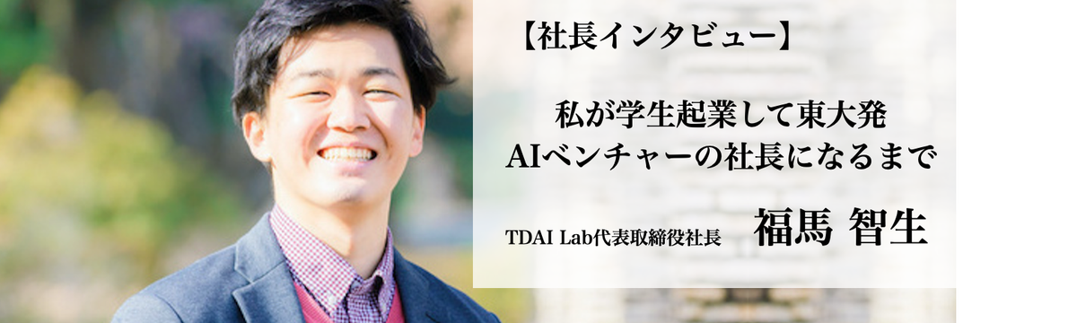 TDAI Lab about 5 years ago Follow 亮 龍華 and 1 others 【社長インタビュー】私が学生起業して東大発AIベンチャーの社長になるまで 本日は株式会社TDAI LabにてCEOを務め日々会社経営に邁進している福馬社長にインタビューをしてきました。現在では、東京大学AI博士×社交ダンス全日本学生チャンピオン×学生起業家と華々しいキ... Read more