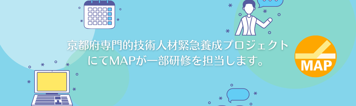 株式会社MAP about 4 years ago Follow Eri Matsuoka 【お知らせ】「京都府専門的技術人材緊急養成プロジェクト」にてMAPが一部研修を担当します。 こんにちは!株式会社MAP 広報チームの松岡です。今回はみなさまにお知らせしたいニュースがございます。この度MAPは、京都府主催の雇用型訓練「京都府専門的技術人材緊急養成プロジェクト」に、ITパ... Read more