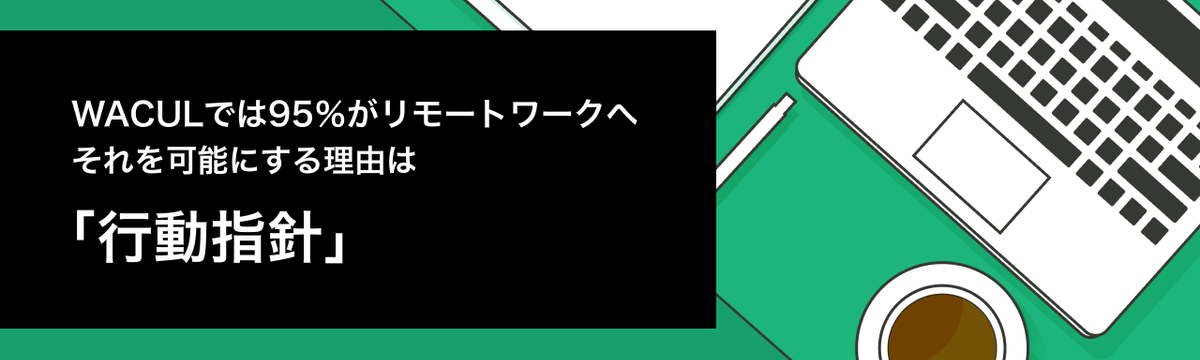 株式会社WACUL over 5 years ago Follow Mami Ikeda WACULは全業務の95%がリモートワークに対応。それを可能にする理由は、ずばり「行動指針」 こんにちは。WACUL人事の池田です。私たちWACULは「テクノロジーで、ビジネスの相棒を一人ひとりに」というビジョンのもと、あらゆるビジネスのデータを最先端のテクノロジーによって、整理・分析だ... Read more