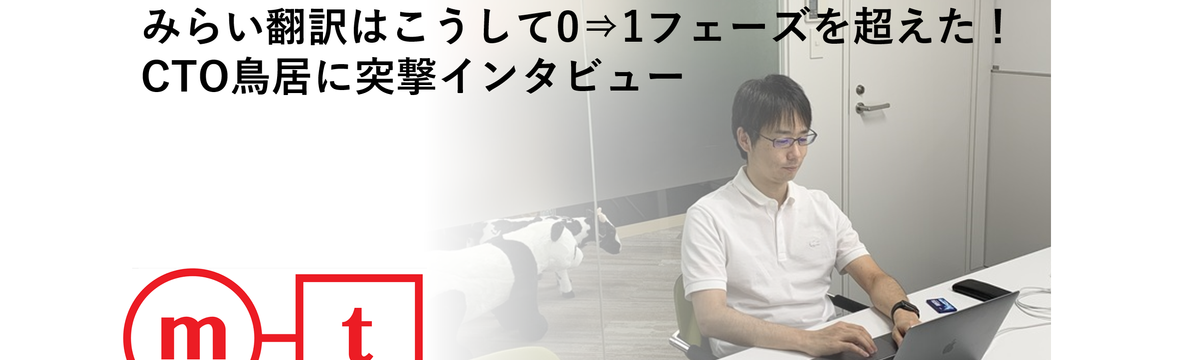 株式会社みらい翻訳 over 5 years ago Follow 渡邊 小百合 and 1 others 【創業ストーリー】みらい翻訳はこうして0⇒1フェーズを超えた!CTO鳥居に突撃インタビュー こんにちは。みらい翻訳の渡邊です。今回はみらい翻訳のCOO・CTO鳥居ことDanny(みらい翻訳ではニックネームで呼び合っています)に、創業当時のことを語っていただきました!----------... Read more