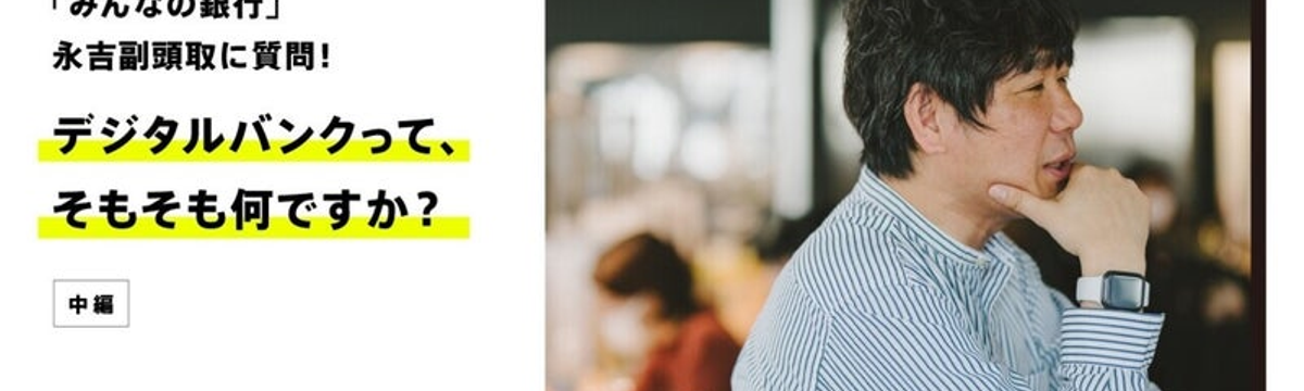 株式会社福岡銀行 over 4 years ago Follow Natsuko Miura 「みんなの銀行」永吉副頭取に質問!デジタルバンクって、そもそも何ですか?(前編) 2021/5/28、国内初のデジタルバンク「みんなの銀行」はお客さま向けサービスの提供を開始しました!これからの時代、銀行はどうなるのか。何がどう「デジタル」になるのか。みんなの銀行副頭取、永吉... Read more