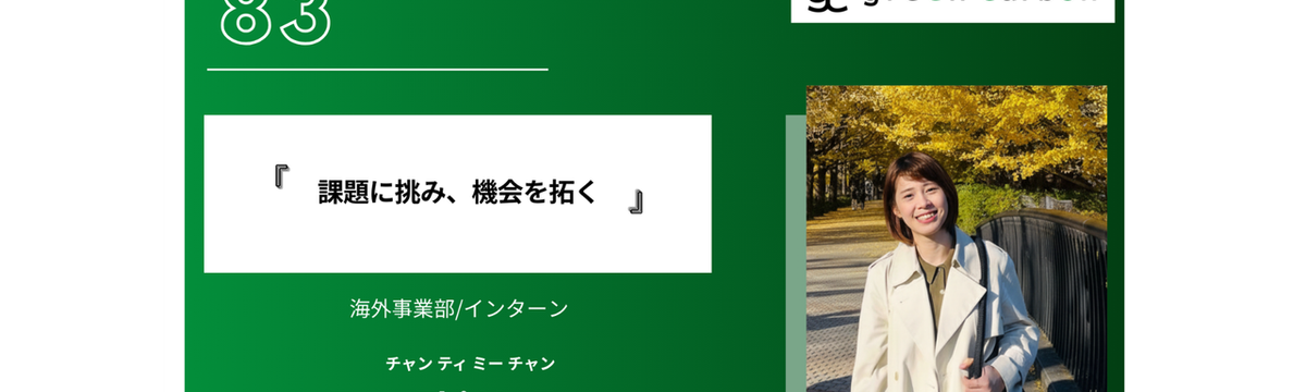 Green Carbon株式会社 3 days ago Follow 前野 友理 Vol.88 Dataでつなぐ、持続可能な未来へ 氏名: 山田リンダ所属部署・役職: 海外事業部 インターン専門分野/担当業務:プロジェクトポテンシャル調査、投資家向けプロジェクト進捗レポート作成、データ収集大学: 筑波大学専攻/学んでいること... Read more