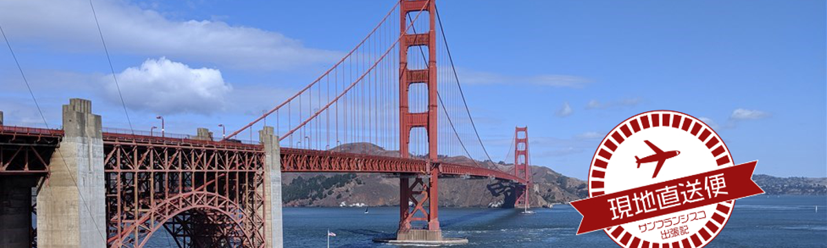 サーバーワークス海外カンファレンスレポート about 6 years ago Follow Kei Miyazawa and 2 others [現地直送便] サンフランシスコ出張記 Golden Gate Bridge編 はい、みなさん、こんにちは。宮澤です。ゴールデン・ゲート・ブリッジ、丈夫すぎ。現在、カンファレンスに参加するためアメリカに来ていますが、休日にサンフランシスコの観光スポットで有名な、ゴールデン・... Read more