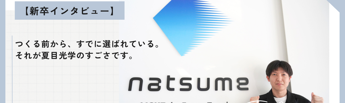社員インタビュー over 1 year ago Follow 夏目光学 採用担当 【新卒インタビュー】粘り強さを活かして、オンリーワン技術の力に。 ーーー本日はよろしくお願いします!まずは簡単な自己紹介からお願いします!2024年4月に新卒入社しました。出身は長野県で、夏目光学のことは高校に貼ってあった企業紹介の紙で見て知りました。そこから... Read more
