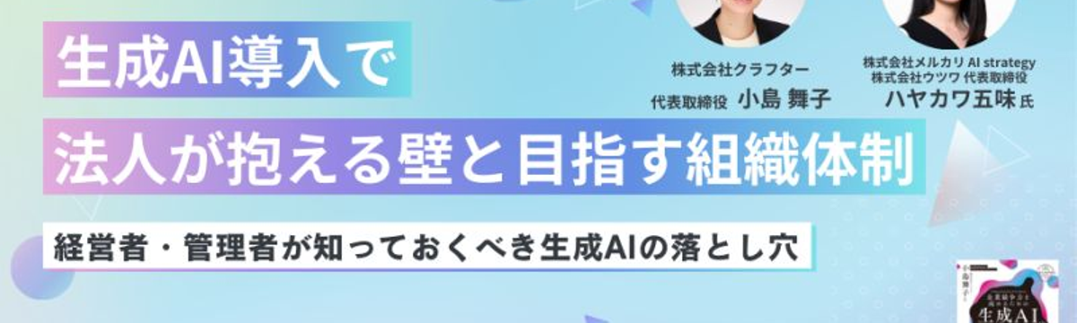 株式会社クラフター 15 days ago Follow 津田 恵子 and 1 others 生成AI導入の壁と組織マネジメントを徹底議論するウェビナー開催! 生成AIを導入する企業が増える中で、多くの法人が直面するのが「導入の壁」と「組織体制の構築」。今回のウェビナーでは、このテーマを深掘りします。登壇するのは、実際に企業でAI導入を推進してきた経験... Read more