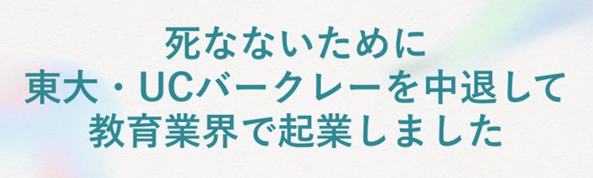 谷津 凜勇 3 days ago Follow 死なないために、東大・UCバークレーを中退して教育業界で起業しました。 お父さん、お母さん、親不孝でごめんなさい。僕が生き続けるためには、この決断しかなかったんです。実は、この決断は今まで、あまり公言してきませんでした。というのも、この話をするときには、必ず、僕とい... Read more