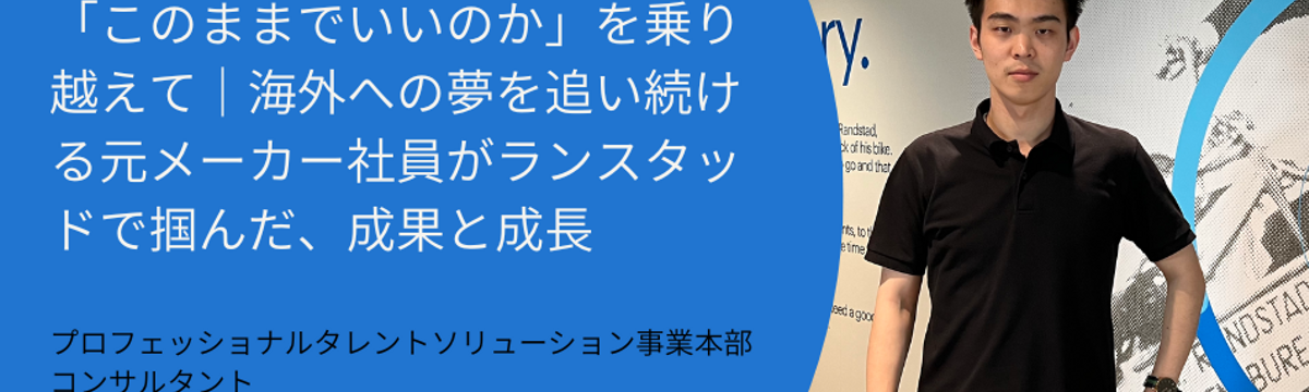 ランスタッド株式会社 6 days ago Follow 瀬戸 千晶 「このままでいいのか」を乗り越えて|海外への夢を追い続ける元メーカー社員がランスタッドで掴んだ、成果と成長 渡辺 隆太郎 プロフェッショナルタレントソリューション事業本部 コンサルタントprofile大阪府出身、高校より国際科に在籍し、大学ではスペイン語を専攻。多国籍の友人に囲まれて育ちました。 卒業... Read more