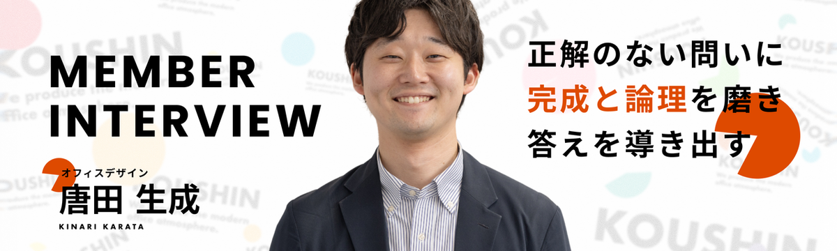 株式会社庚伸 28 days ago Follow 庚伸 採用担当 【社員インタビュー】空間を飾るのではなく「会社の未来」から逆算したデザイン。感覚を研ぎ澄ませ、唯一無二の答えを導く。 「空間を作るのではなく、企業の未来をデザインする。その介在価値の大きさこそが、今の僕のやりがいです。」かつて、一流ホテルのベルマンとしておもてなしを提供し続けてきた唐田さんは、「オフィスデザイン... Read more