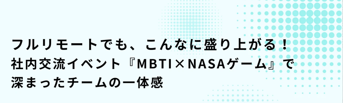 株式会社イルシル about 16 hours ago Follow 市川 善惠 フルリモートでも、こんなに盛り上がる! 社内交流イベント『MBTI×NASAゲーム』で深まったチームの一体感 私たちイルシルは、AI搭載のスライド自動生成サービス「イルシル」を開発・運営しています。2025年1月時点でユーザー数は12万人を突破、前年比1,100%以上を達成するなど、事業は急成長していま... Read more