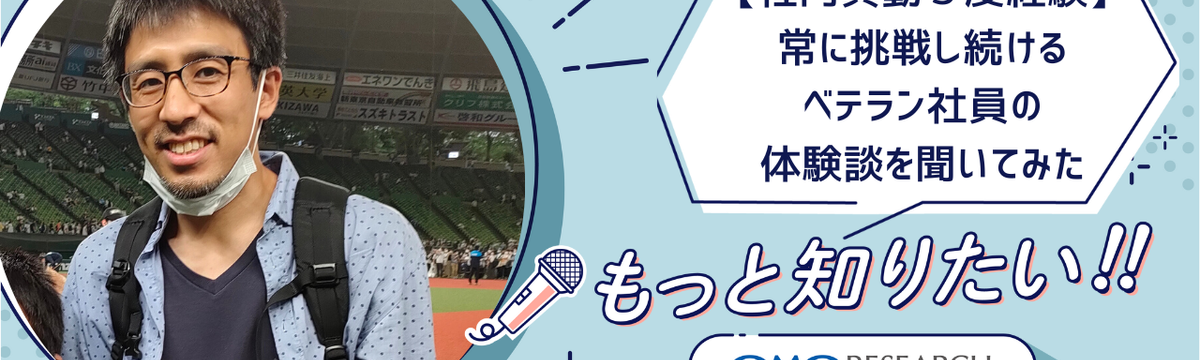 Interview about 3 years ago Follow Mana Nakamura 社内異動を3度経験。必要とされる場所で常に挑戦し続けるベテラン社員の体験談を聞いてみた こんにちは!GMOリサーチの中村です!みなさんは「会社の中で自分が必要とされているポジション」を考えたことはありますか?また、そのポジションで最大限の力を発揮するにはどうしたら良いのか?誰もが抱... Read more
