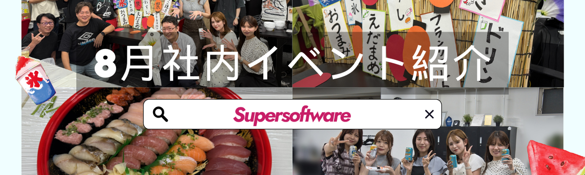 人材・文化 about 1 month ago Follow 朝倉 【会社で夏祭りを堪能?!】社員交流イベント「スパパ」をレポート こんにちは!(株)スーパーソフトウエア東京オフィス 広報の朝倉です。スーパーソフトウエア東京オフィスでは、社内イベントとして、スーパーパーティーを定期開催しています。・スーパーパーティー(略して... Read more