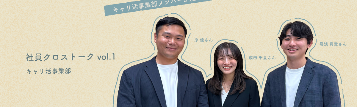 株式会社SAMURAI 10 months ago Follow Yukari Sato 【社員クロストークVol.1】入社のきっかけは?「キャリ活事業部」メンバーが語る会社の魅力 こんにちは!採用担当の佐藤ゆかりです。今回は、キャリアの選択肢を広げる「キャリ活事業部」の社員3名を深掘りします。入社のきっかけや業務内容、部署の雰囲気について、鼎談形式で語ってもらいました!【... Read more