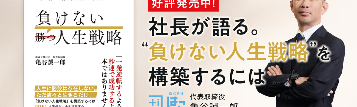 株式会社はこ 13 days ago Follow Nakano Ayumi 【代表コラム vol.3】早いうちに知っておくとお得な「人生のルール」 こんにちは!はこ採用担当の仲野🐟️です。この度、代表の亀谷が、2冊目の著書となる『負けない人生戦略』を出版しました!🎉今回は、書籍ができるまでの話しや、込められた思い、その考え方が事業にどのよう... Read more