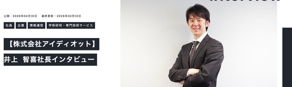 お知らせ 19 days ago Follow Machida Sayomi and 1 others THE Leaderに代表井上のインタビュー記事が掲載されました。 海外FX株式会社様が運営する、ビジネスに役立つ経営者・企業インタビューメディア「THE Leader」に、代表井上のインタビュー記事が掲載されました。理念やビジョンに込めた想いや、数あるDX・A... Read more