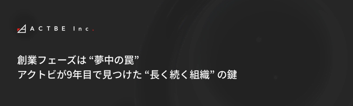 CEO's Blog about 2 months ago Follow ACTBE Inc. 人事 創業フェーズは 夢中の罠|アクトビが9年目で見つけた「長く続く組織」の鍵 こんにちは。アクトビ代表の藤原です。前回の記事に関連するテーマで創業期にわたし自身が陥った罠と、そこから得た学びについて書いていこうと思います。創業当初の ガムシャラな日々 から少しだけ落ち着い... Read more