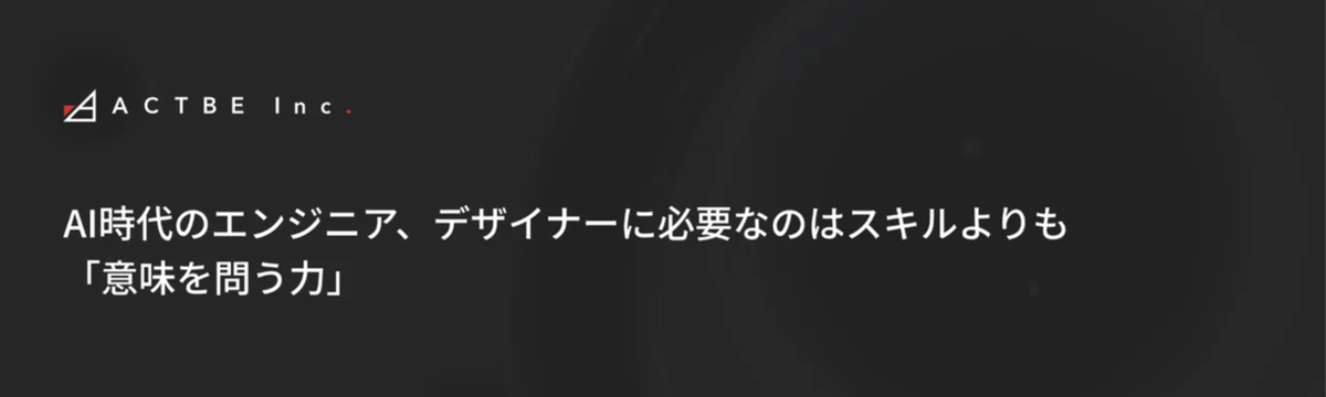 CEO's Blog about 2 months ago Follow ACTBE Inc. 人事 AI時代のエンジニア、デザイナーに必要なのは、スキルよりも「意味を問う力」 こんにちは。アクトビ代表の藤原です。今回は、わたしたちが掲げている「Purpose Driven(目的駆動)」という考え方について、そしてそれがなぜ “次世代のエンジニア組織” の鍵になるのか、... Read more