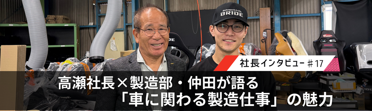ブリッド株式会社 4 months ago Follow S K 【BRIDEの仕事を深掘り】高瀬社長×製造部・仲田が語る、「車に関わる製造仕事」の魅力 こんにちは!BRIDE株式会社広報担当です。「仕事を深掘りシリーズ」第5弾は、製造を行う大府デポから入社4年になる仲田が登場。車に関わる製造仕事の魅力や責任を、高瀬社長と語ってもらいました。 ―... Read more