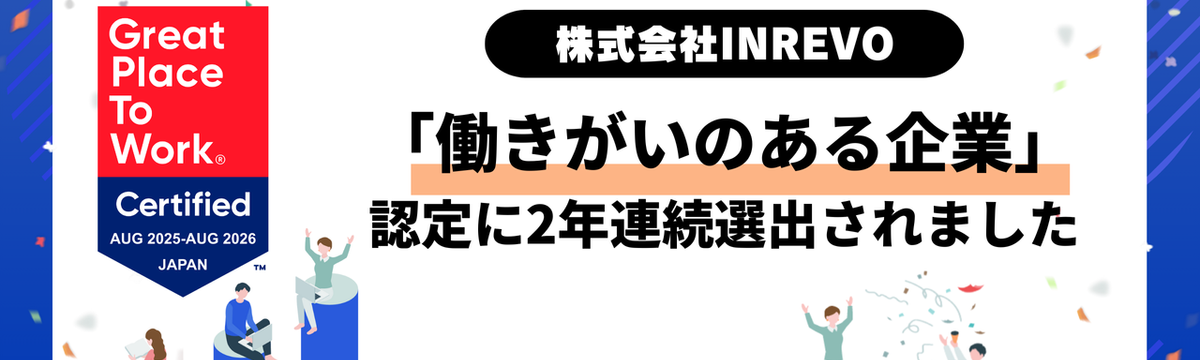 株式会社INREVO 18 days ago Follow INREVO 採用担当 「働きがいのある企業」認定に2年連続選出されました! こんにちは!INREVO広報担当です。このたび、私たちは「働きがいのある会社認定」を2年連続で取得しました🎉INREVOはスタートアップでありながら、制度とカルチャーの両面で“働きがい”を実装 ... Read more