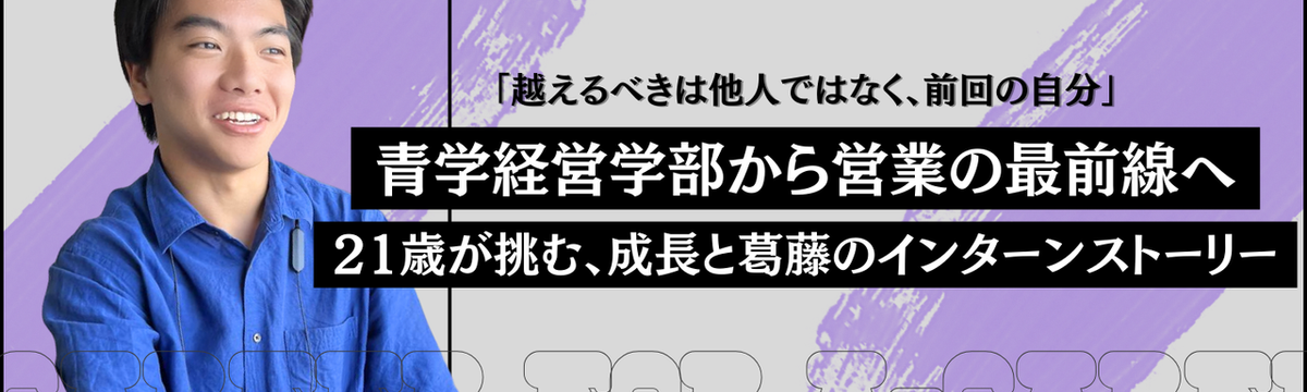 株式会社For A-career 18 days ago Follow Rayuka Nishimura and 2 others 「越えるべきは他人ではなく、前回の自分」青学経営学部から営業の最前線へ。21歳が挑む、成長と葛藤のインターンストーリー はじめに「手が震えるくらい緊張して、最初のテレアポでは言葉が出なかったんです」そう笑いながら話すのは、青山学院大学経営学部4年生の磯田さん。バスケや映画を楽しむ、どこにでもいそうな21歳の学生が... Read more