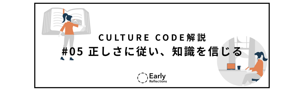 カルチャー over 2 years ago Follow Sae Wakida 【カルチャーコード解説 #05】正しさに従い、知識を信じる アーリーリフレクションでは、行動指針としてカルチャーコードを公開しています。ここではカルチャーコードの5を取り上げて解説します。Code 5. 正しさに従い、知識を信じる・正しい考えは、理解すれ... Read more