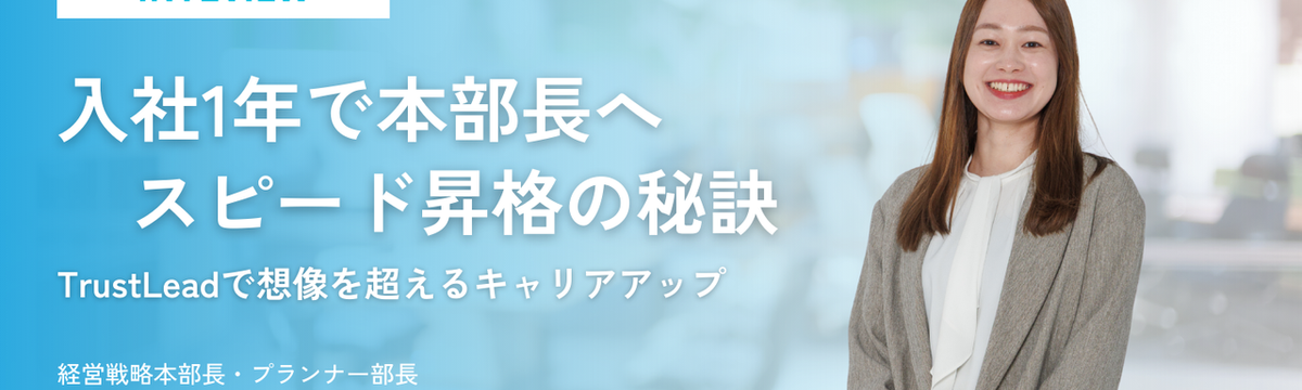 株式会社Trust Lead about 1 month ago Follow 緒方 幸実 and 1 others アルバイトから1年未満で管理職へ。TrustLeadで“成長の最短距離”を走る理由 TrustLeadにジョインするまでに、2社のベンチャー企業を経験した伊藤さん。2社目ではECサイト立ち上げと全アカウントの統括副責任者を経験。TrustLeadでは1年未満で執行役員となり、組... Read more