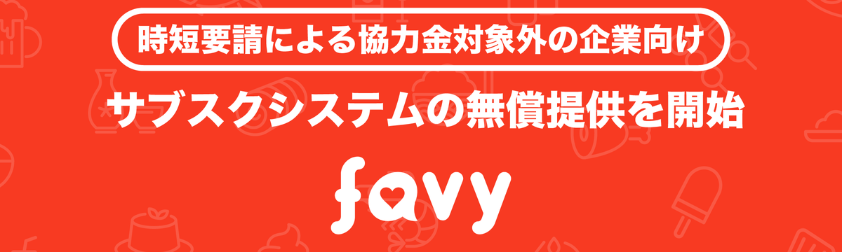 株式会社favy almost 5 years ago Follow Airi Kawashima 【コロナ対策支援】緊急事態宣言に伴う時短営業要請による協力金支給対象外の大手飲食店企業様向けに「favyサブスク」... 現在、新型コロナウイルス感染症拡大の影響により11都府県に発令されている緊急事態宣言に伴い、多くの飲食店様が時短営業をせざるを得ない状況となっています。事業の規模に関わらず時短要請されている一方... Read more