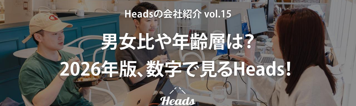 Headsの会社紹介 about 9 hours ago Follow Arisa Higashibata 男女比や年齢層は?2026年版、数字で見るHeads! - Headsの会社紹介 vol.15 クリエイティブとデジタルマーケの会社、株式会社Headsです。本日は改めて、現在(2026年2月)の株式会社Headsのメンバーについてご説明させていただこうと思います!オフィスはどこにあるの?... Read more