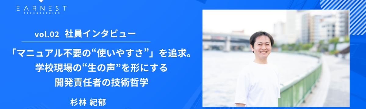 株式会社アーネストテクノロジーズ 18 days ago Follow M C vol.02 社員インタビュー / 「マニュアル不要の“使いやすさ”」を追求。学校現場の“生の声”を形にする開発責... “使いやすさ”のその先へ──技術と情熱で挑む、自社サービス開発の舞台裏「プログラムを書くのが好き」――中学時代に出会ったプログラミングをきっかけに、ものづくり一筋で歩んできた杉林さん。20年以上... Read more