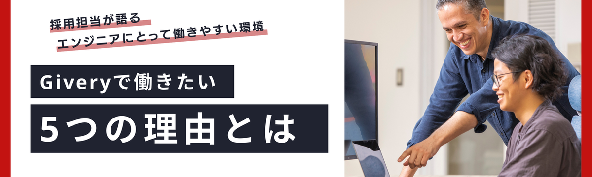 Givery,Inc. 10 months ago Follow Natsuki Hayakawa エンジニアがGiveryで働きたい5つの理由 はじめまして!エンジニア採用を担当している早川です。みなさん転職するのであれば、やはり「長く働きたい」と思える会社がいいのではないでしょうか?Giveryでは人事の私から見ても、エンジニアにとっ... Read more