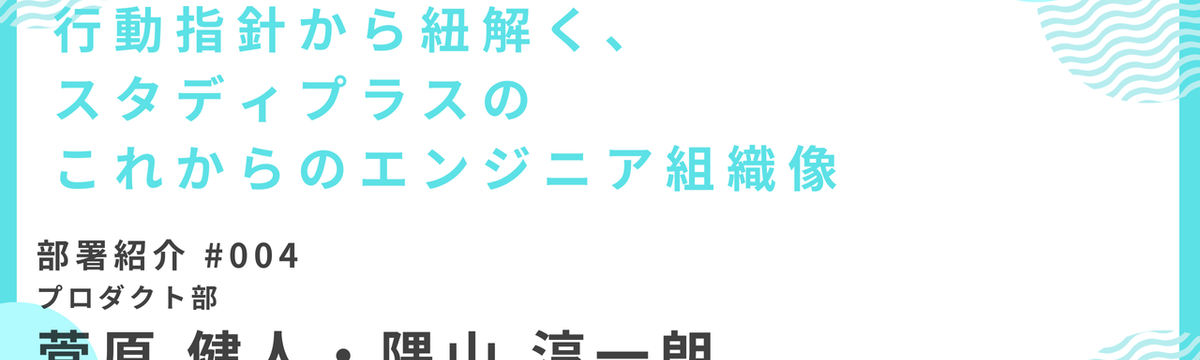スタディプラス株式会社 3 months ago Follow Yuuya Saitou 行動指針から紐解く、スタディプラスのこれからのエンジニア組織像 前回の記事では、スタディプラスの開発組織が行動指針をつくることになった背景や、2日間の合宿でどんな議論が交わされたのかを中心にお伝えしました。今回は、スタディプラスのエンジニア組織として掲げた4... Read more