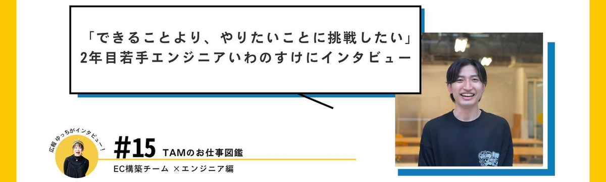 TAMのお仕事図鑑 2 months ago Follow yukino watanabe 「できることより、やりたいことに挑戦したい」入社2年目の若手エンジニアいわのすけにインタビュー TAMメンバーにインタビューする「TAMのお仕事図鑑」シリーズ。今回は、2024年に入社したエンジニアの“いわのすけ”こと岩下さんに話を聞きました。インターン中にプログラミングスクールの責任者に... Read more