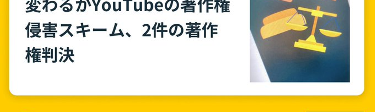 Yoshihiko Yoshida almost 4 years ago Follow 変わるかYouTubeの著作権侵害スキーム、2件の著作権判決 / おはようございます!(^_^)\変わるかYouTubeの著作権侵害スキーム、2件の著作権判決https://stand.fm/episodes/61c3d6ca3f164e0007f4389... Read more