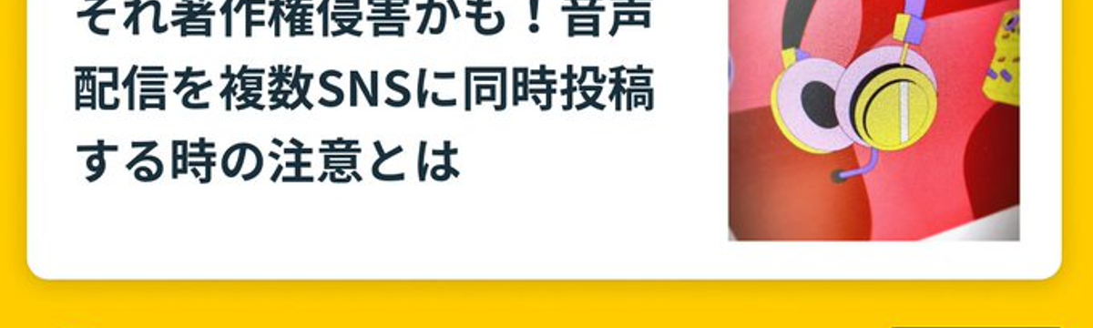 Yoshihiko Yoshida almost 4 years ago Follow それ著作権侵害かも!複数SNSに同時投稿する時の注意とは / おはようございます!(^_^)\それ著作権侵害かも!複数SNSに同時投稿する時の注意とはhttps://apple.co/3GeNHZz音声配信を動画にしてYouTubeにも投稿する。You... Read more