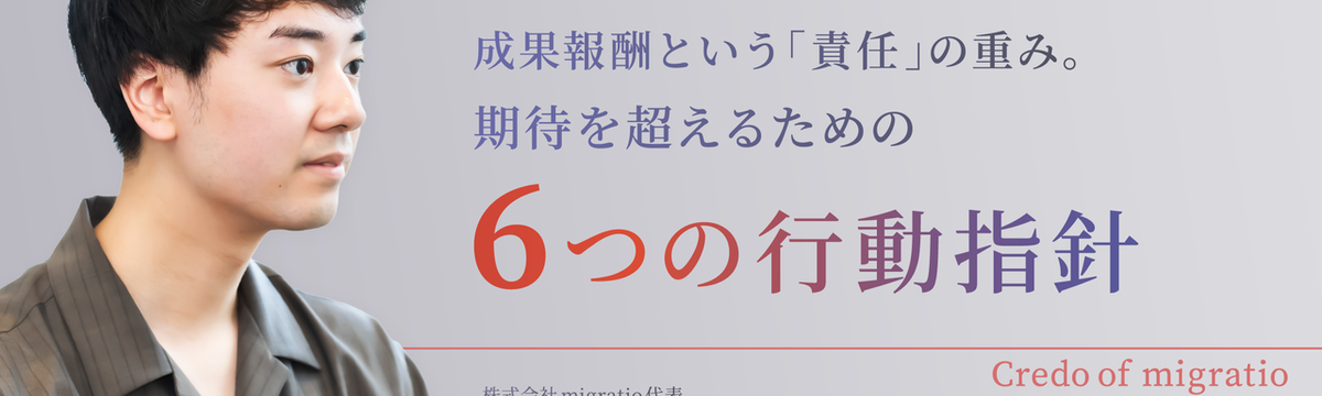 株式会社migratio 16 days ago Follow 佐藤諒 裁量も責任も大きい。だからこそ決めた、migratioの6つの行動指針 こんにちは!migratioです。私たちは創業初期のスタートアップとして「クライアントの成果に、どこまでも本気で向き合う」ことを大切に、データに基づいた最適なデジタルマーケティング支援を行ってい... Read more