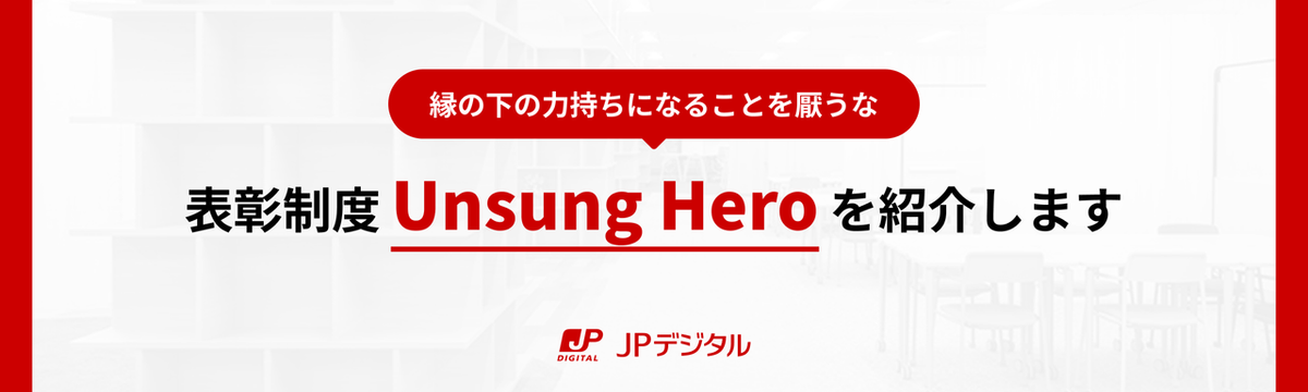 JPデジタルのカルチャー 3 months ago Follow Yasuharu Watanabe and 3 others 「縁の下の力持ちになることを厭うな」表彰制度 Unsung Hero を紹介します JPデジタルでは月に1度、特に活躍している社員を称え、表彰しています。今日はそのなかでもUnsung Hero(縁の下の力持ち)という独自の表彰制度を紹介します。縁の下の力持ちになることを厭うな... Read more