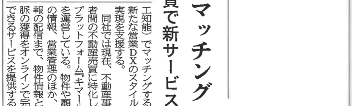 リマールエステート株式会社 about 4 years ago Follow Masayuki Akagi 住宅新報に、非公開物件をマッチングする新サービス『キマールマーケット』についての記事が掲載されました。 リマールエステートが8月に提供を開始した『キマールマーケット』では、最新技術の不動産テックを活用することにより、「物件」と「顧客」をAI(人口知能)でマッチングすることが可能となります。 Read more