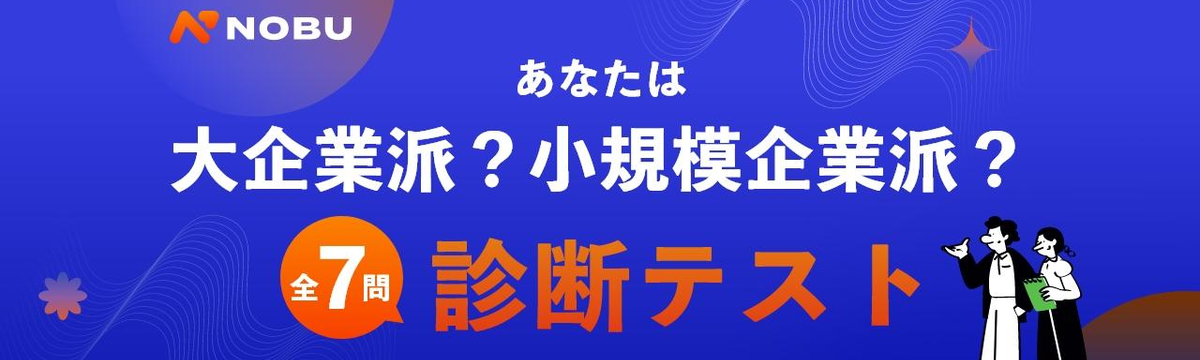 株式会社NOBU 11 months ago Follow ebihara natsumi あなたは大企業派?それとも小規模企業派?診断テスト こんにちは!仕事選びで迷うあなたに朗報です。「安定感抜群の大企業がいい!」「いやいや、少人数の自由な環境でやりたい!」どちらにも魅力がありますが、どっち派なのかは人それぞれ💫この診断では、あなた... Read more