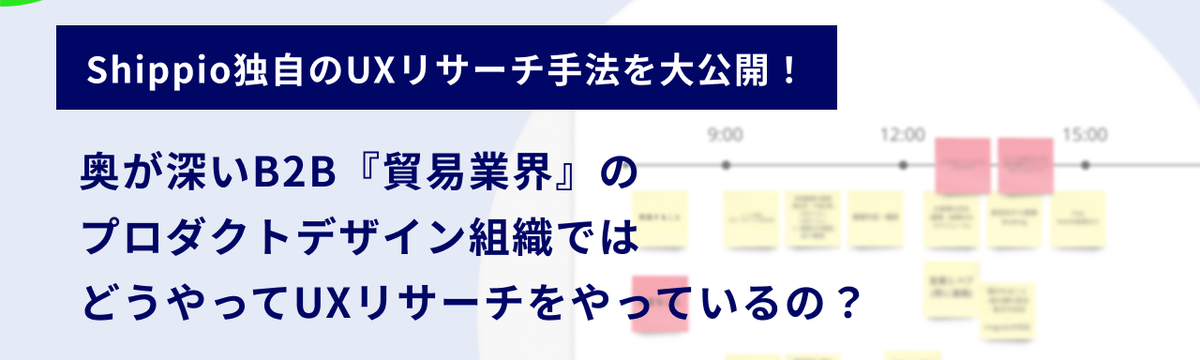 株式会社Shippio over 3 years ago Follow Mariane Ikejima 奥が深いB2B『貿易業界』のプロダクトデザイン組織ではどうやってUXリサーチをやっているの?Shippio独自のU... こんにちは!ShippioのプロダクトデザイナーのMyraです。今回のストーリーでは、Shippioで実施したUXリサーチ手法についてご紹介します。ShippioではUXリサーチをどうやっている... Read more