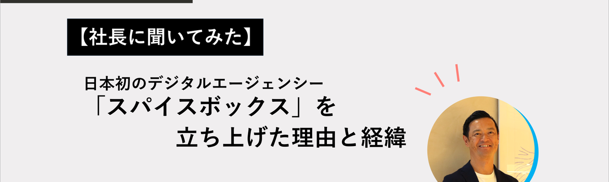 株式会社スパイスボックス over 4 years ago Follow 愼太郎 阿久津 【社長インタビュー】日本初のデジタルエージェンシー「スパイスボックス」を立ち上げた理由と経緯 こんにちは、スパイスボックス・採用広報担当の阿久津です。スパイスボックスは、設立から17年が経ちました。時代に合わせ形を変えていくスパイスボックスを見続けてきた社長の田村さんに、改めて立ち上げた... Read more